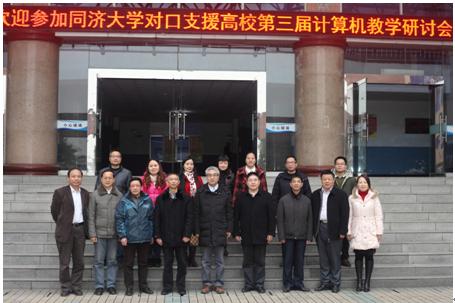 1月16日上午,同济大学对口支援高校“第三届计算机教学研讨会”在我校三教学楼105会议室举行。宜宾学院孟林副院长、周广均副院长以及来自同济大学、井冈山大学等20余位专家嘉宾参加了研讨会。研讨会分为开幕式和研讨交流两个阶段。开幕式由孟林副院长主持。周广均副院长和同济大学苗夺谦副院长分别做了热情洋溢的致辞。开幕式结束会,各位参会嘉宾在三教楼前合影留念。