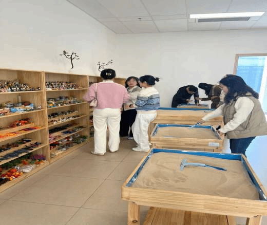 心理放松按摩椅区域同样备受关注。辅导员们坐上去体验不同按摩程序,深度放松身体。按摩椅能快速缓解身体疲劳,舒缓心理压力,十分实用。沙盘游戏区,丰富多样的沙具摆在眼前。辅导员们在摆放沙具构建内心世界的过程中,深刻体会到沙盘游戏作为心理治疗手段的有效性,能帮助学生探索内心、解决问题。