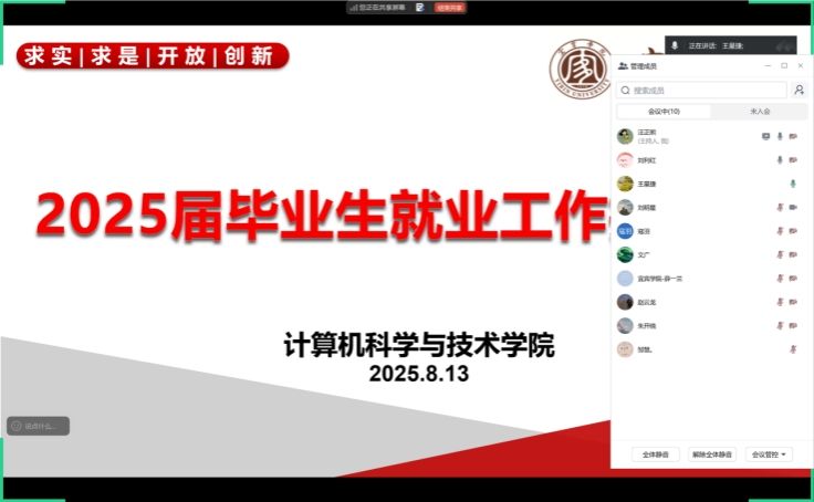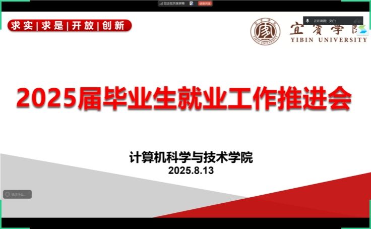 为持续做好2025届毕业生就业工作,保证学生高质量充分就业。8月13日晚,宜宾学院计算机科学与技术学院线上召开暑期第二次就业工作推进会。党委副书记(主持工作)王星捷、2025届毕业班班主任、就业工作人员参加会议。