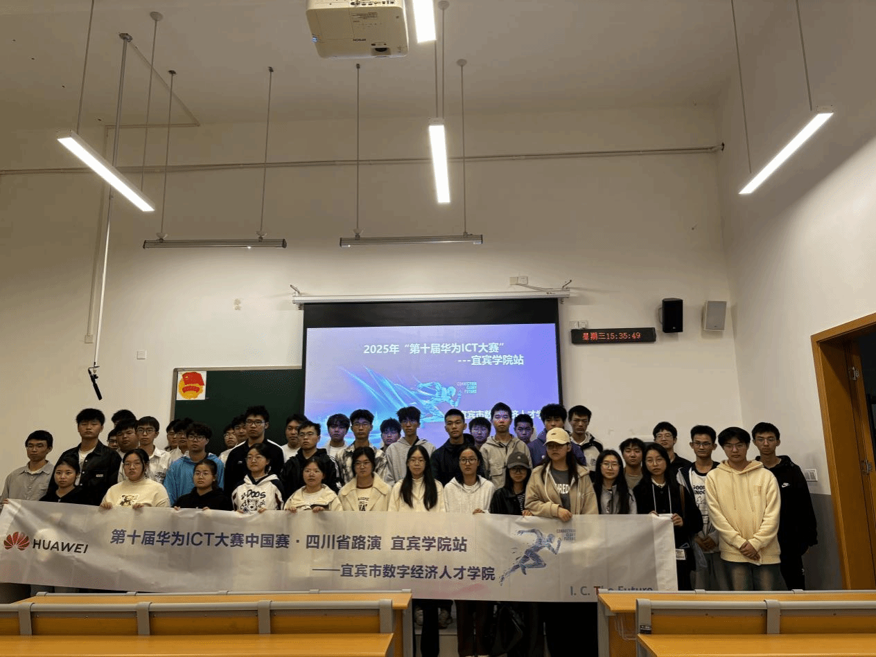 为深化产教融合,搭建以赛促学的高水平平台,激发学生对信息通信技术的兴趣,引导大家通过竞赛提升专业技能与综合素养。2025年10月29日,宜宾市数字经济人才学院走进宜宾学院临港校区,在6号楼6122教室面向我院学子成功举办了第十届华为ICT大赛专场路演活动,现场吸引了来自计算机科学与技术学院及相关专业的60余名同学积极参与。