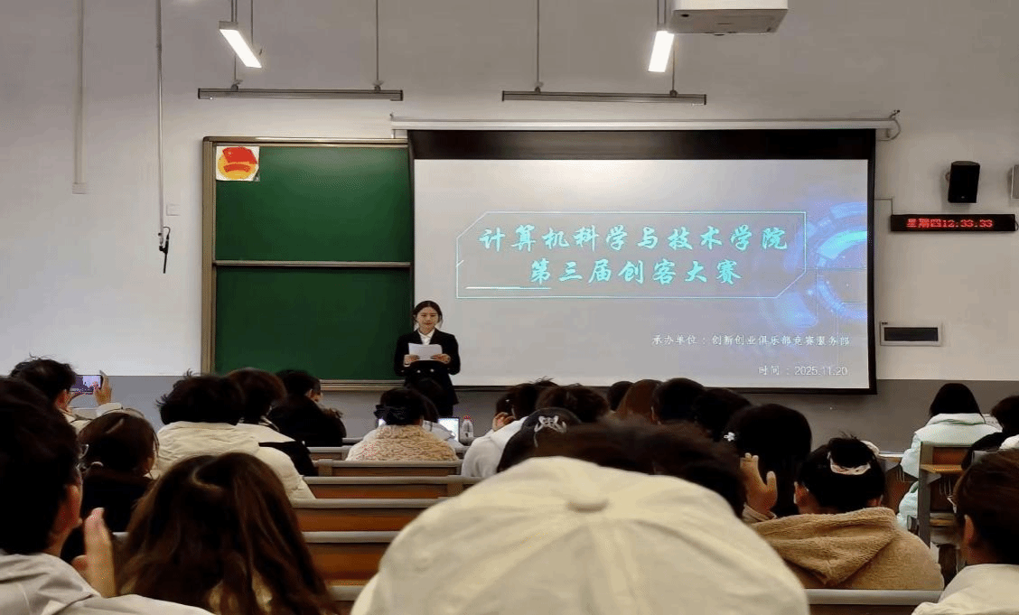 创想筑梦,智启未来!为激发学生创新思维、展示科创项目成果,2025年11月20日中午12:30,计算机科学与技术学院在杏林6栋6120教室举办(源代码众创空间承办)第三届创客大赛路演活动。本次活动邀请了邹慧、林文娇、王毓乾、朱开晓等教师担任评委,学院各年级学生团队参与路演展示。
