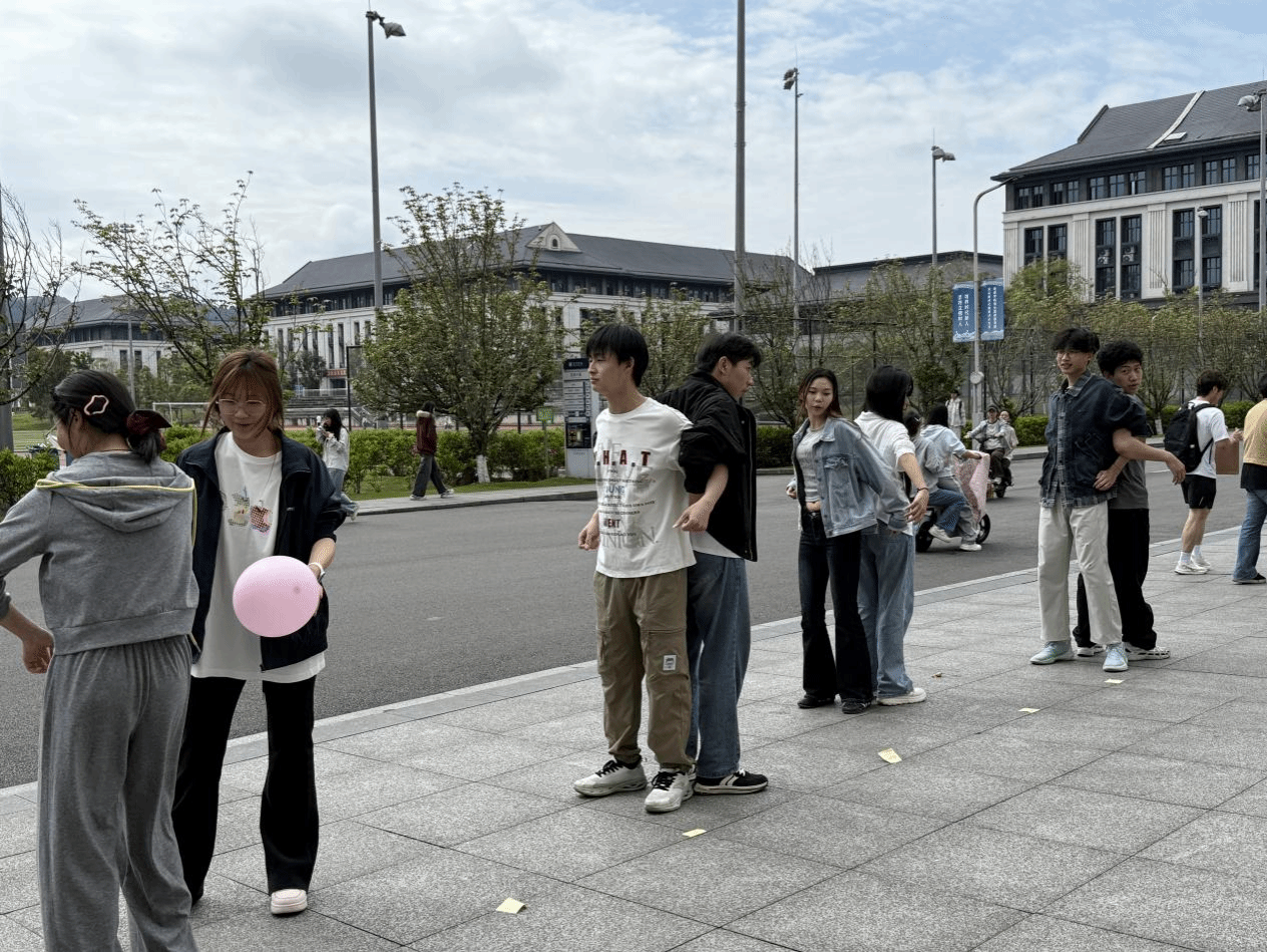 本次周末大舞台紧扣 “薪火承长征” 红色主线,将长征精神的深刻内涵融入趣味团建项目中。活动现场设置了多项考验团队协作的趣味竞技环节,同学们以小组为单位,全身心投入到背夹球、协同闯关等互动游戏中。大家分工明确、默契配合,在奔跑中挥洒汗水,在协作中攻克难关,时而为队友的精彩表现欢呼呐喊,时而为共同的目标并肩冲刺,欢声笑语回荡在校园广场的每一个角落。