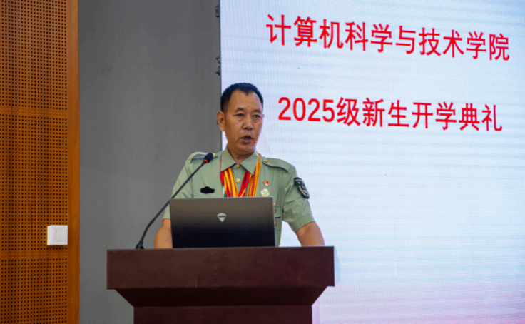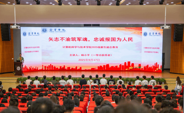 为深入学习贯彻习近平新时代中国特色社会主义思想,加强党员教师思想政治教育,2025年9月17日,计算机科学与技术学院教师党支部组织党员教师在求是会堂开展 “榜样引领 强国有我——践行使命勇担重任 坚守初心砥砺奋进”主题党课活动,活动特邀宜宾市退役军人杨小平作报告,党员教师们与新生一起听课,共同接受思想洗礼。