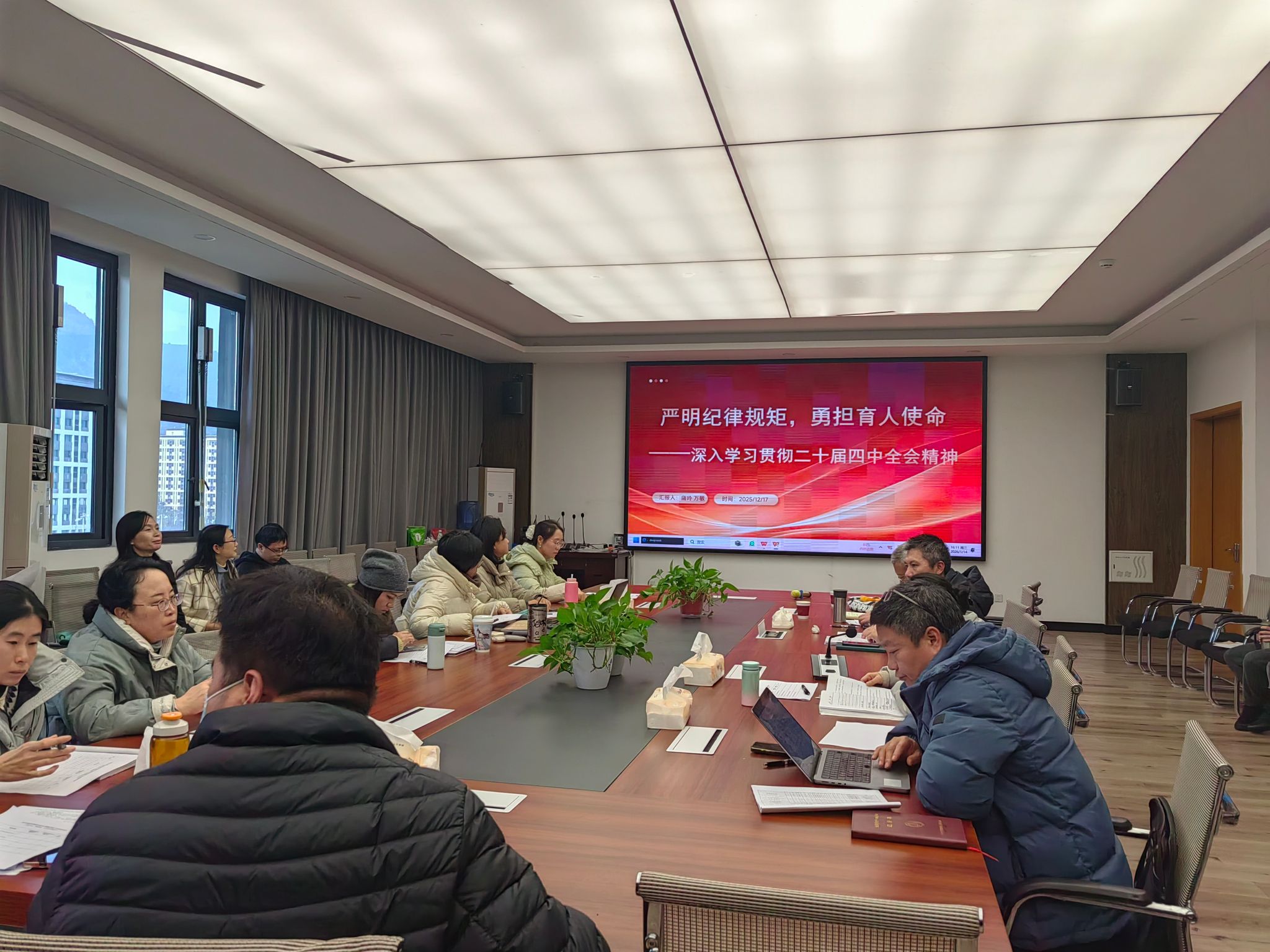 为深入学习党的二十届四中全会精神,进一步推进“强国行”专项行动。宜宾学院计算机科学与技术学院教师党支部以严明纪律规矩为抓手,于2026年1月14日在临港校区6430组织专题党课二十届四中全会精神,本次学习紧扣“严明纪律规矩 勇担育人使命”主题,党课由教师支部书记万敏主讲。