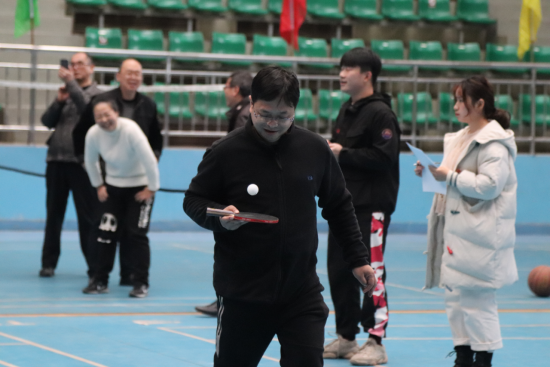 比赛共有4个团体项目,分别是拔河比赛、乒乓球接力赛、篮球接力赛和跳绳比赛。参赛队伍按专业教研室分为计科、数媒、软工和大数据四支队伍,老师们在现场热烈的气氛下放开了手脚,各个摩拳擦掌,斗志昂扬,为冬日校园增添了一抹热烈的色彩。