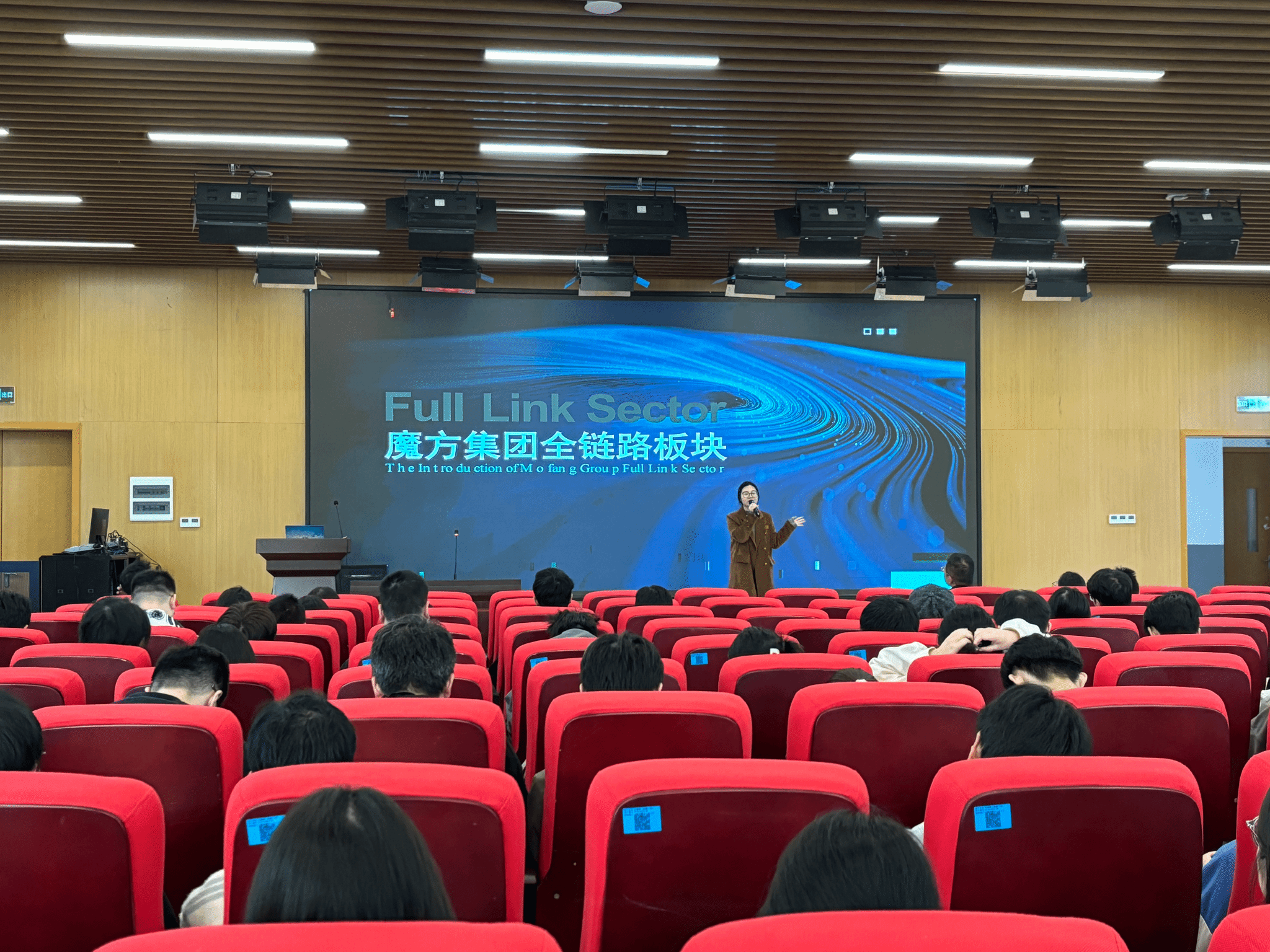 随后,宜宾魔方影视有限公司代表围绕短剧与AI影视行业发展趋势、企业核心优势展开分享,结合实际案例生动讲解了剪辑、AIGC设计师等岗位的工作内容、能力要求及职业成长路径,同时针对2026届毕业生推出了80+招聘名额,详细说明了薪资福利、培养体系及晋升通道。