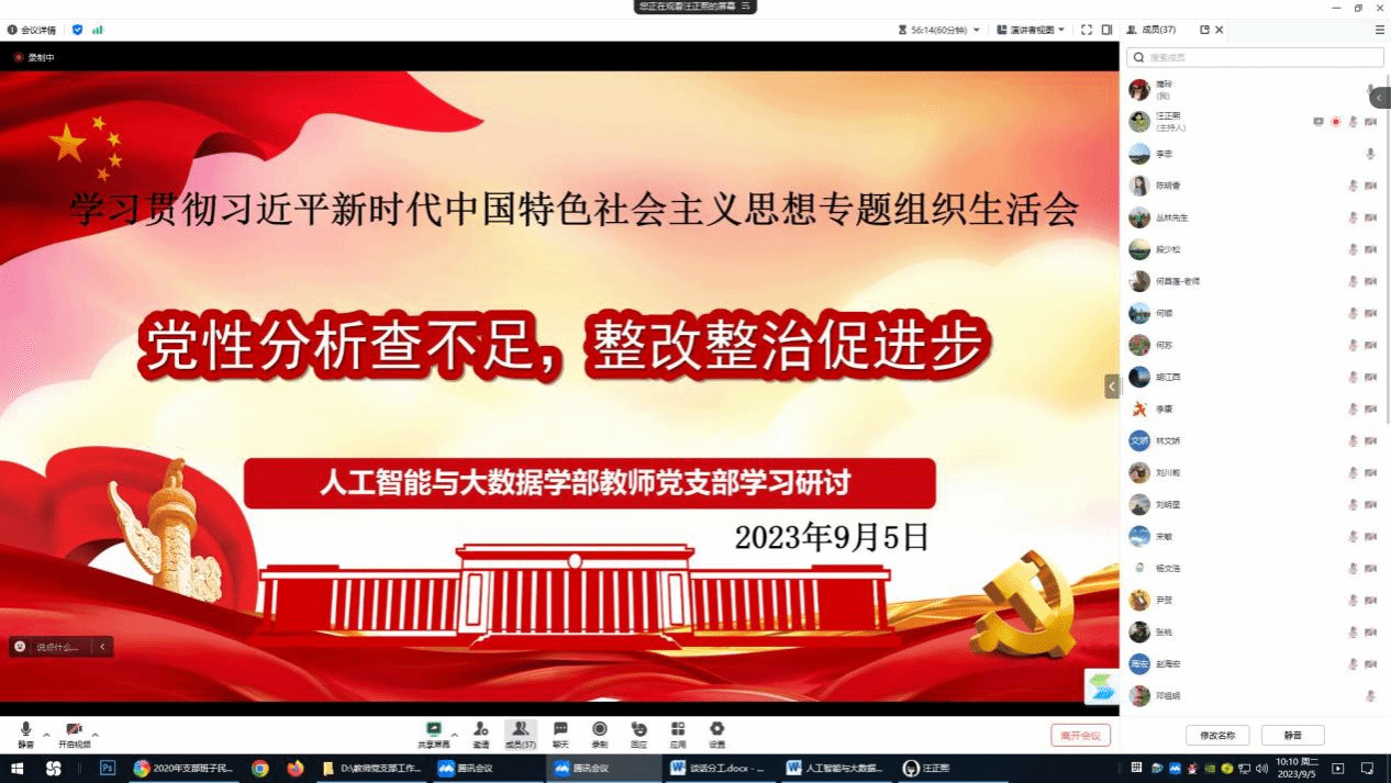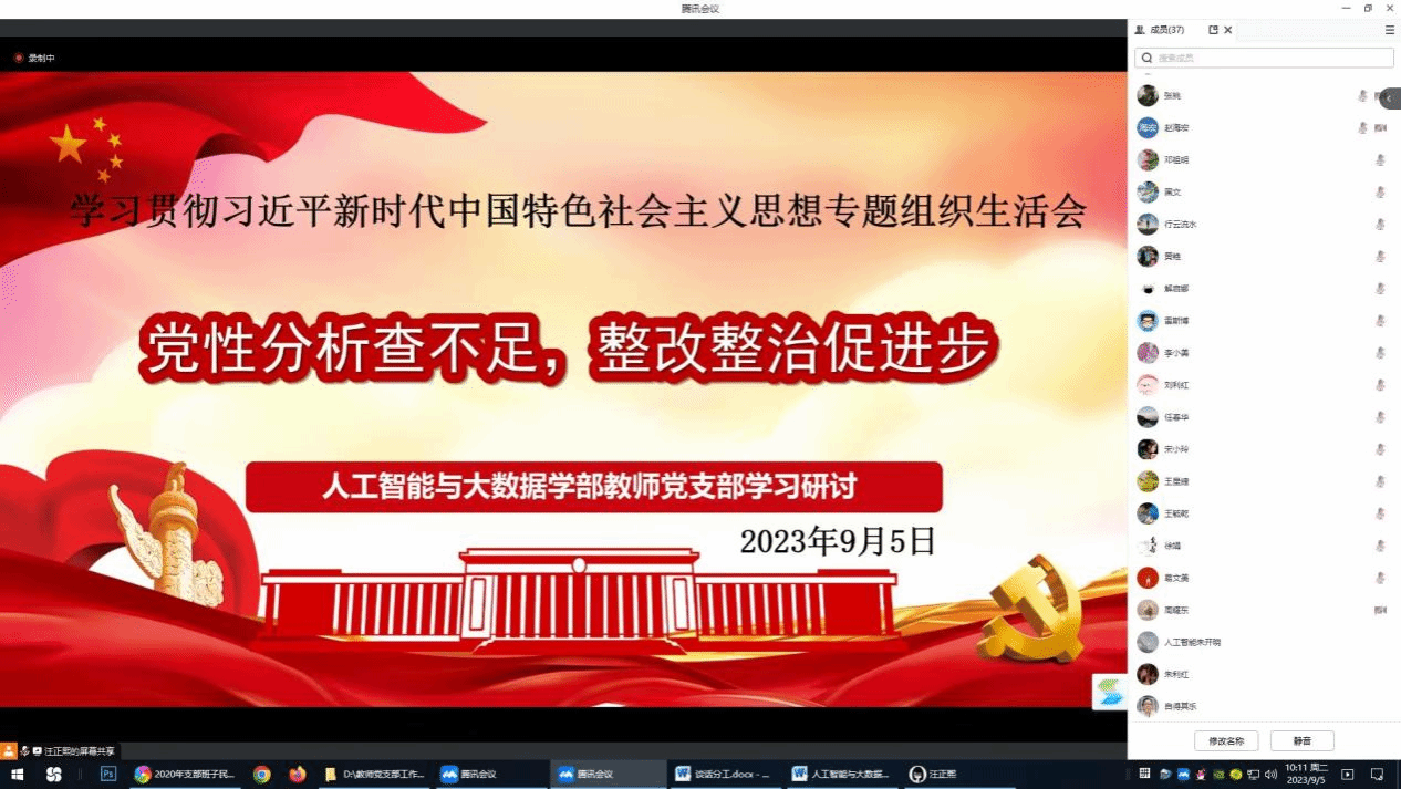 9月5日上午,人工智能与大数据学部召开学习贯彻习近平新时代中国特色社会主义思想专题组织生活会,会议采用线上模式,全体党员参加。学部正处级组织员李忠,学部副书记(负责工作)王星捷、学部副部长李朝荣出席会议,会议由教师党支部副书记蒲玲主持。